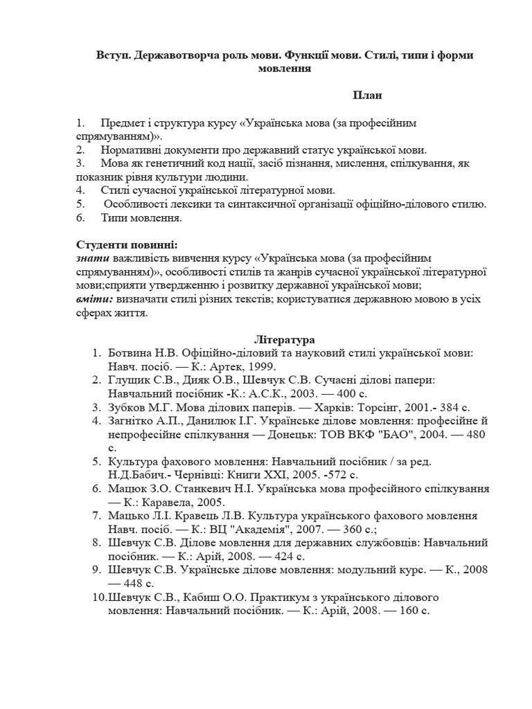 Vstup Derzhavotvorcha Rol Movi PDF
