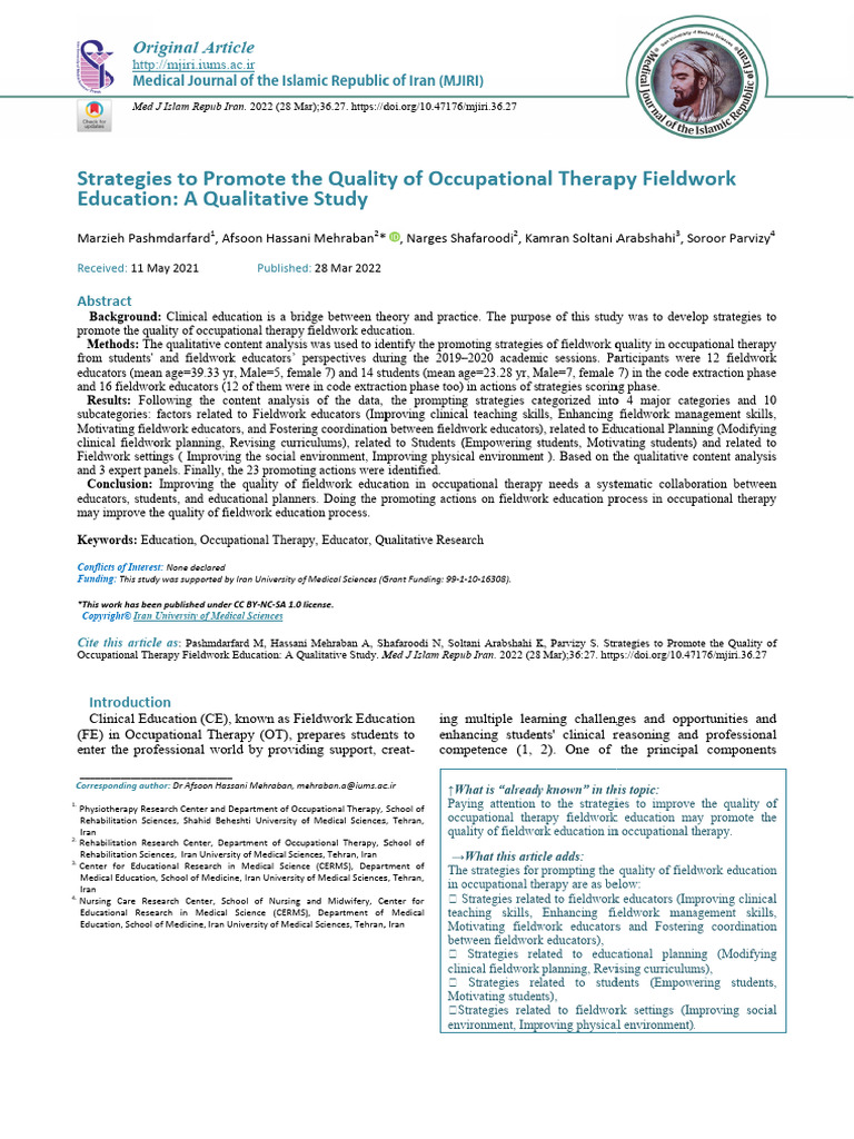 Strategies To Promote The Quality of Fieldwork Education PDF